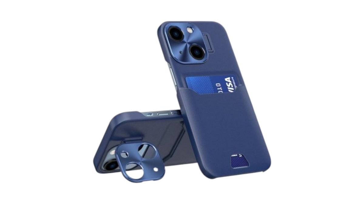 iLike - iPhone 14 Leather Stand Case card wallet with stand Blue
