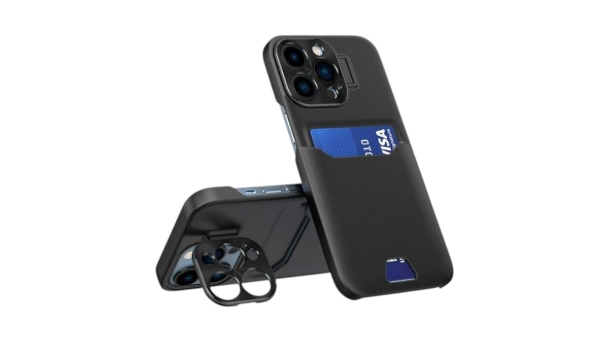 iLike - iPhone 14 Pro Leather Stand Case cover card wallet with stand Black