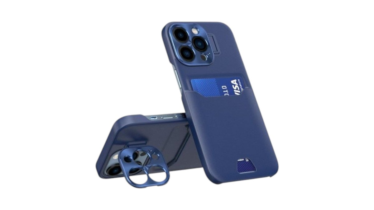 iLike - iPhone 14 Pro Max cover card wallet with stand Leather Stand Case Blue