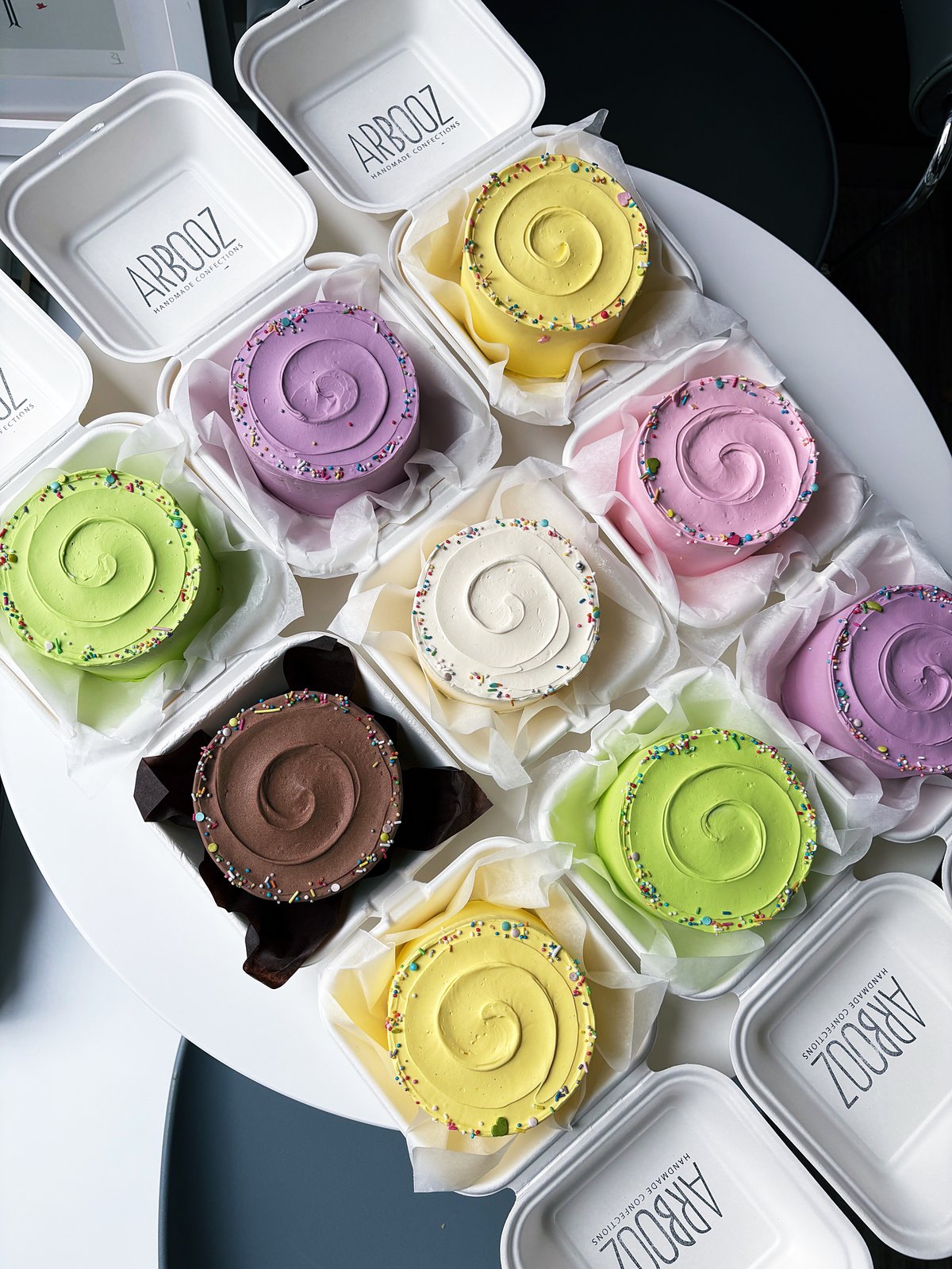 Freshly baked cupcakes, cakes, french macarons and other desserts.