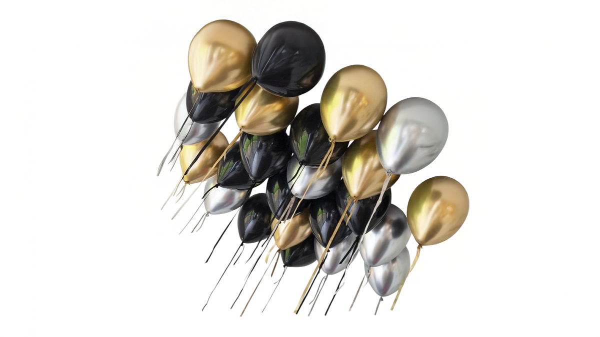 15 baloni melnā, sudrabā un zeltā Chrome krāsā, 30cm