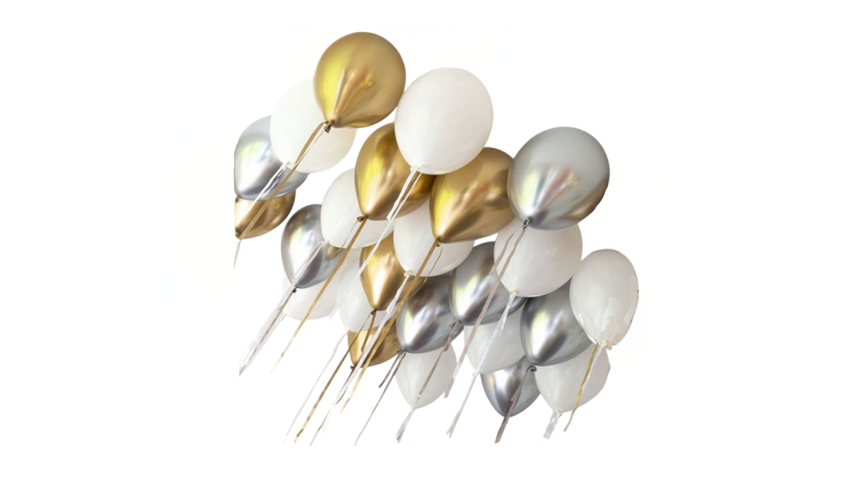 15 baloni baltā, sudrabā un zeltā Chrome krāsā, 30cm