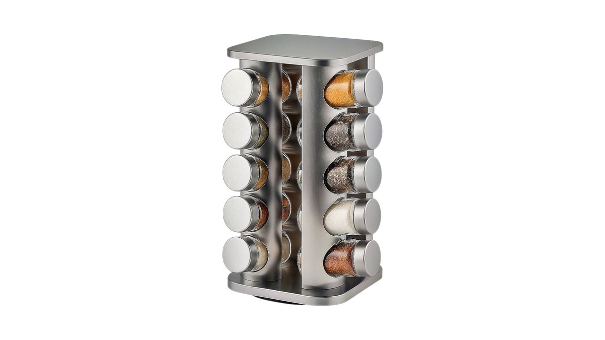 20 garšvielu burciņu komplekts ar rotējošu statīvu