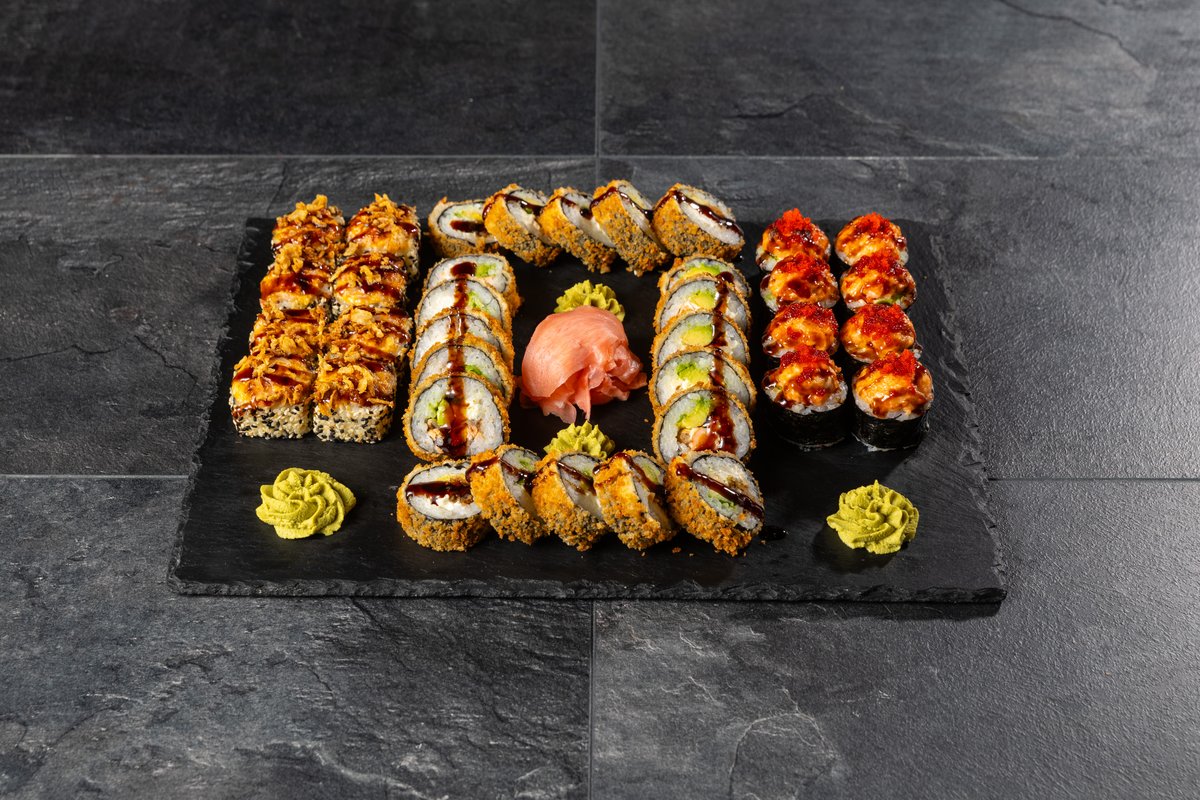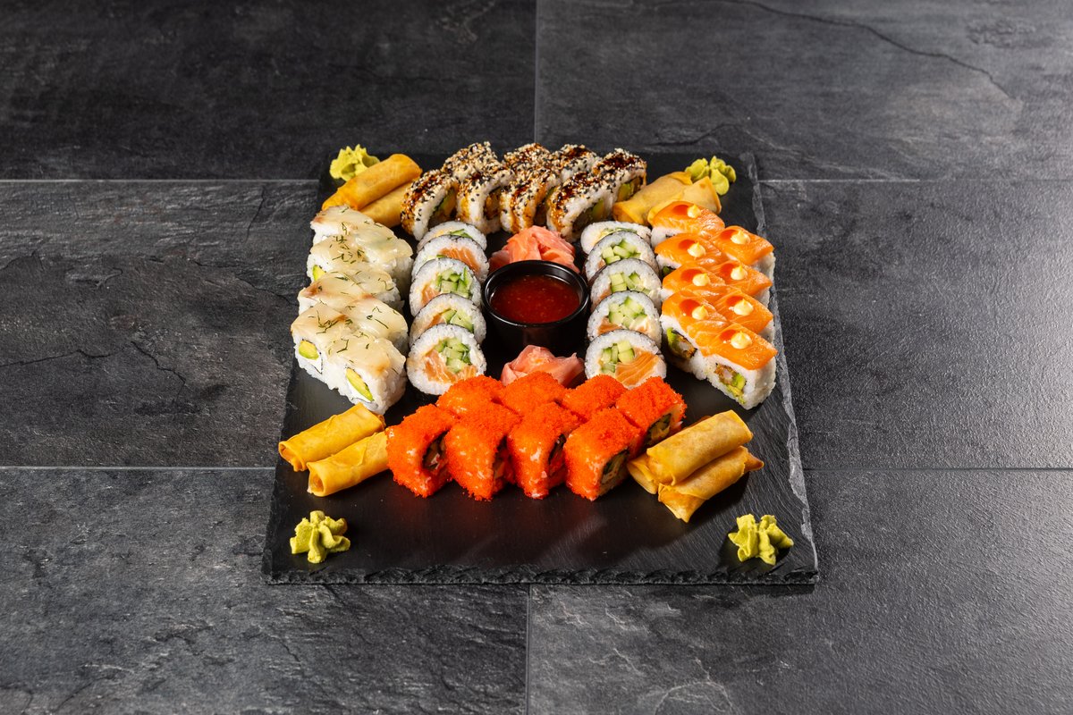Futo Maki Pikantais Lasis, Ura Maki Florida, Ura Maki Crispy Ebi, Ura Maki Sarkanais pūķis, Ura Maki Baltais pūķis, spring rolls 10 gab.