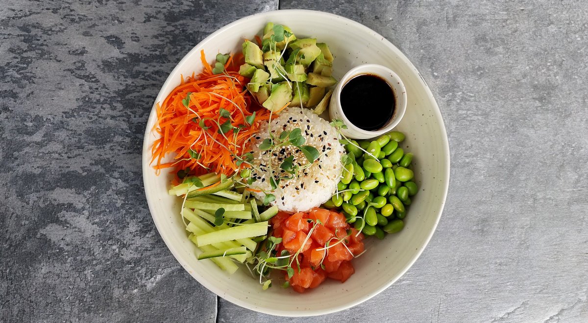 Lasis, avokado, edemame, gurķis, burkāns, rīsi
