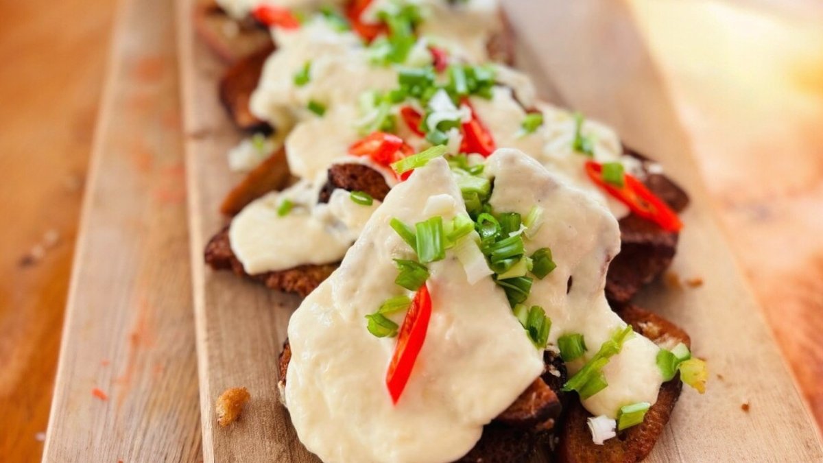 Ķiploku grauzdiņi ar sieru un ķiploku mērci