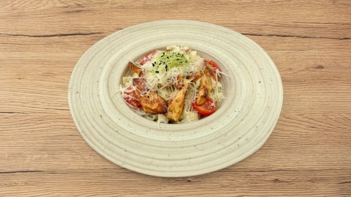 Cēzara salāti ar lēni gatavotu vistas fileju