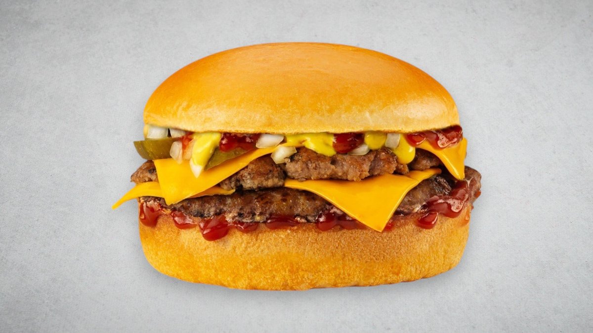 Бургер лепче, 2х смеш јунешки плескавици, 2х чедар кашкавал, биг мек сос, ајсберг, кисели краставички, кромид