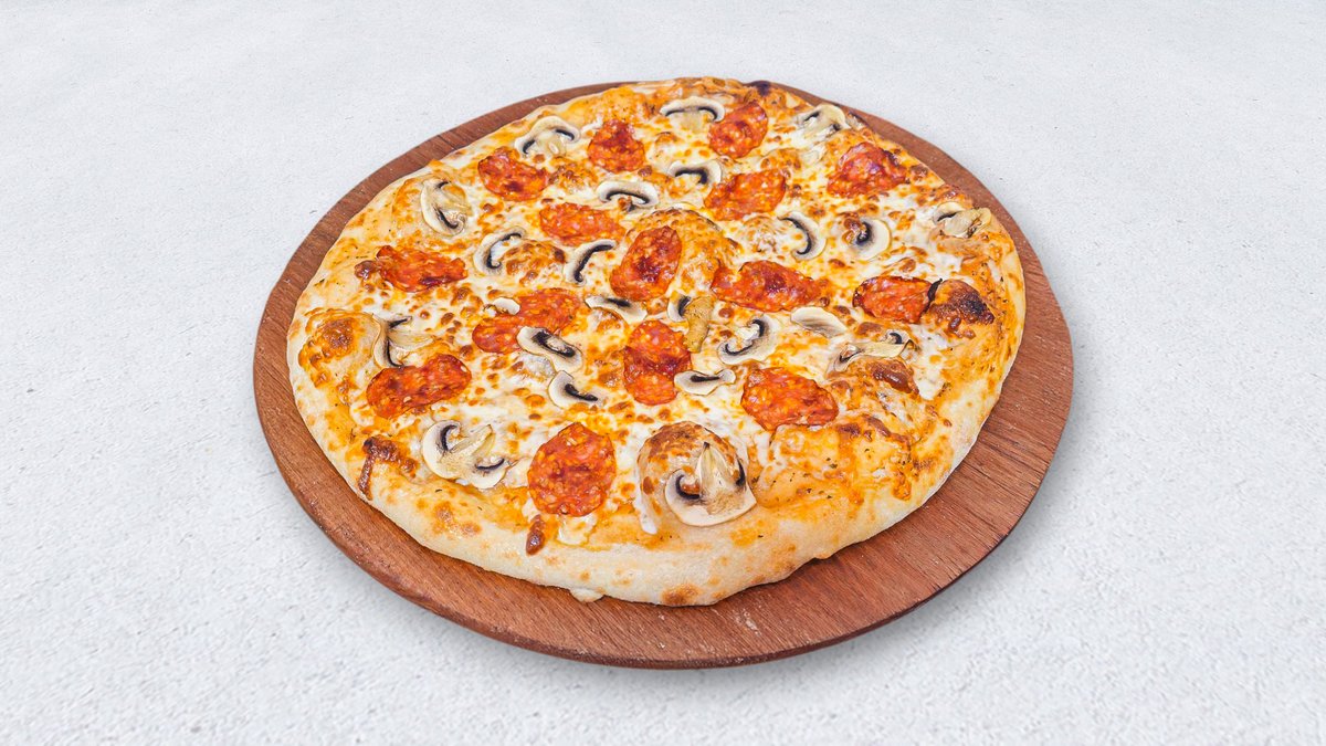 Пелати сос, кашкавал, печурки, домат, пиперка, маслинка