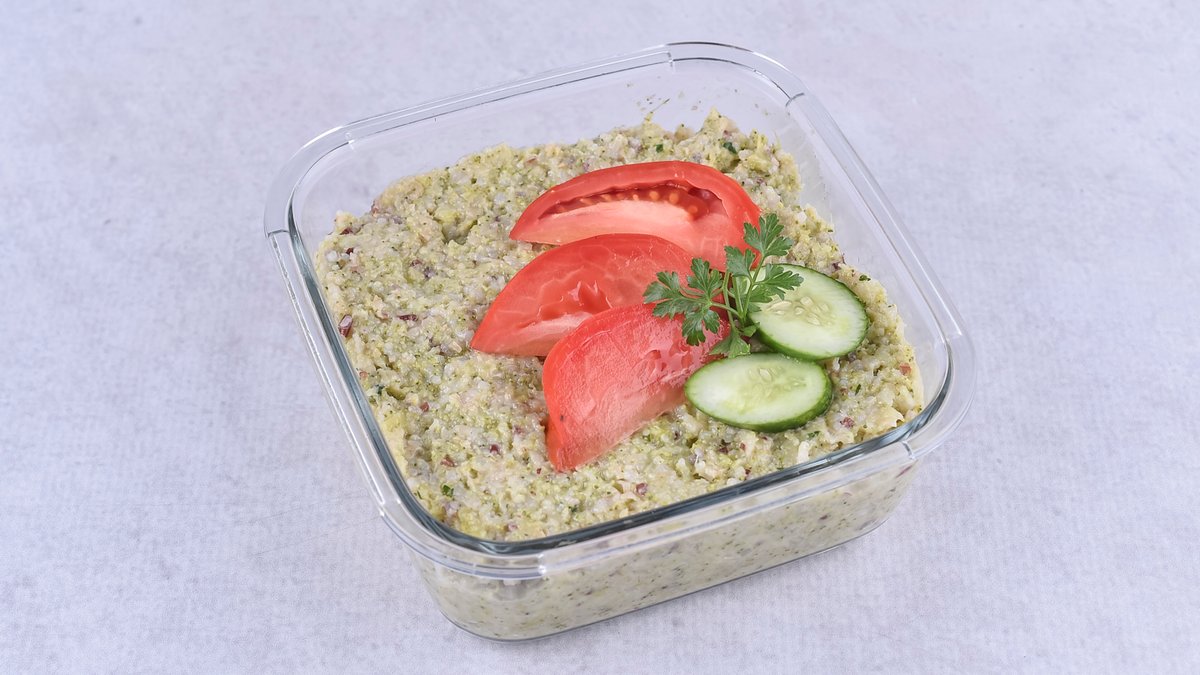 Интегрално лепче; мајонез од житарици; кинеска салата; хумус; крем салата од зеленчук; свежа салата од зелка и морков; ќебапчиња од леќа
