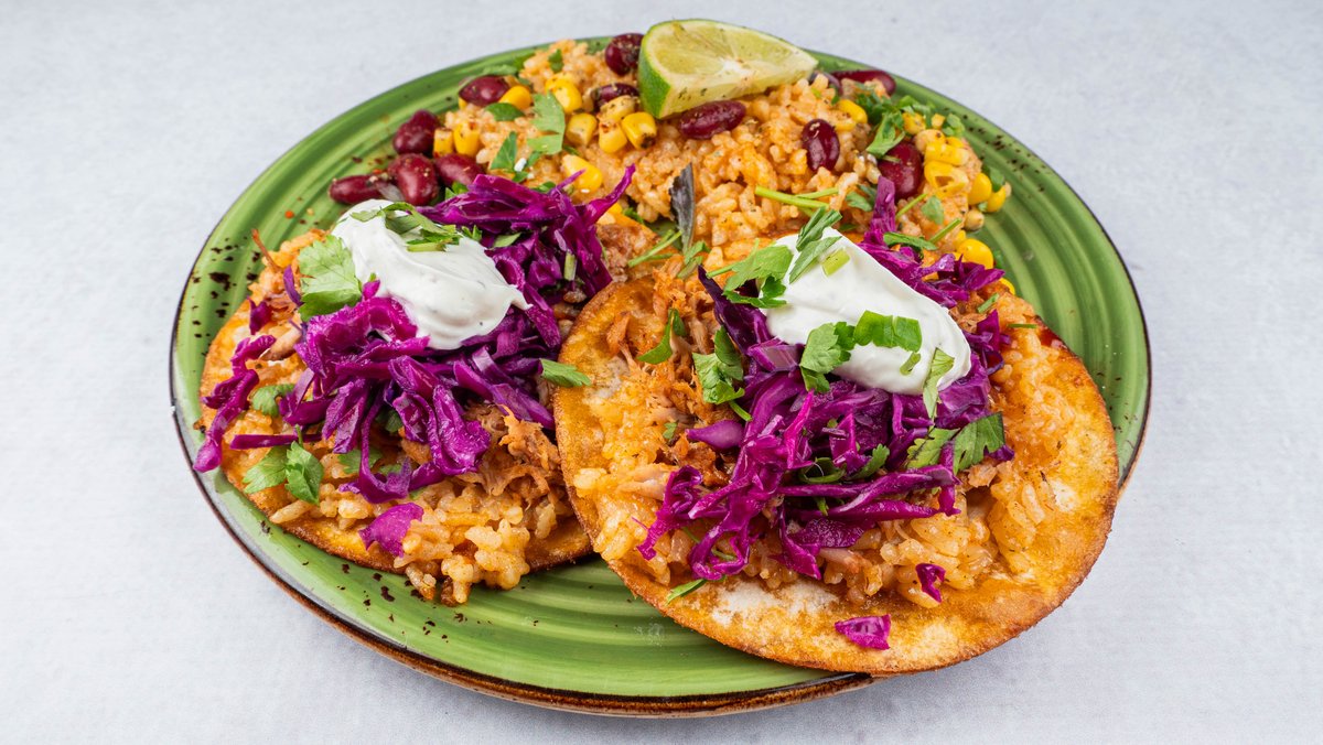 Тортиља, ориз, свинско месо, црвена зелка, павлака крема, кориандер