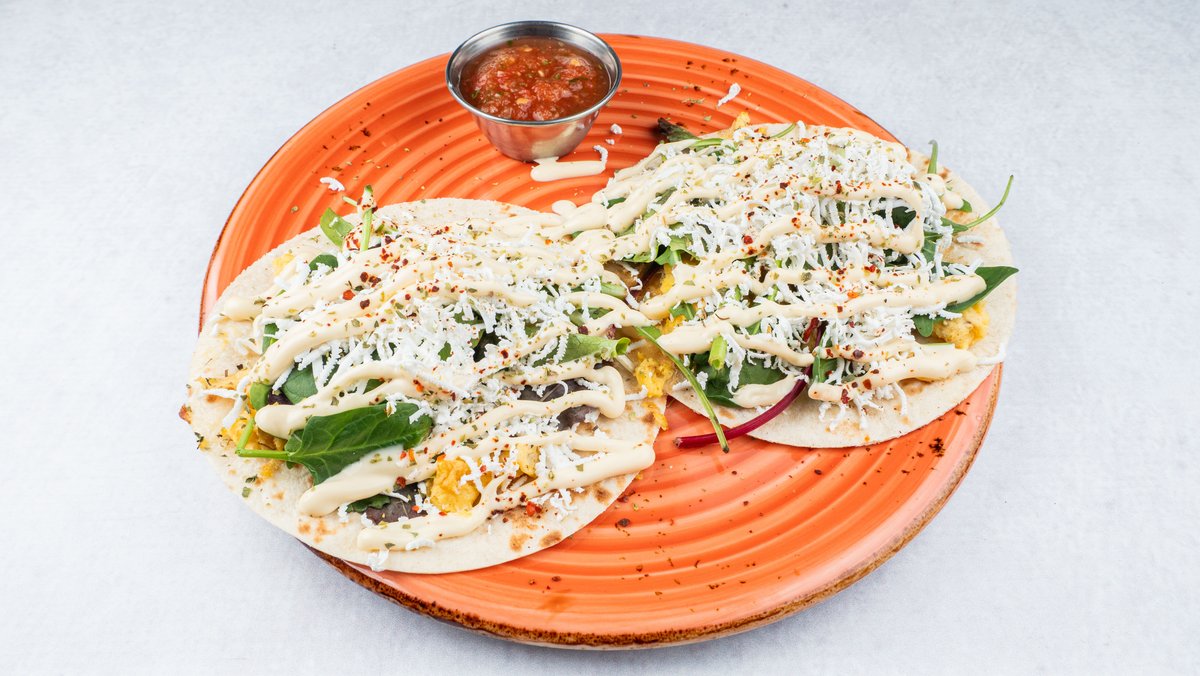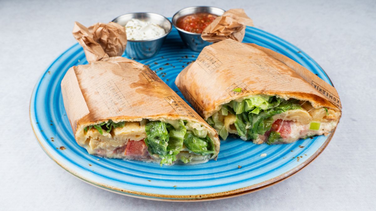 X2 тортиль, jајца, микс салата, мајо, сирење, сајд сос