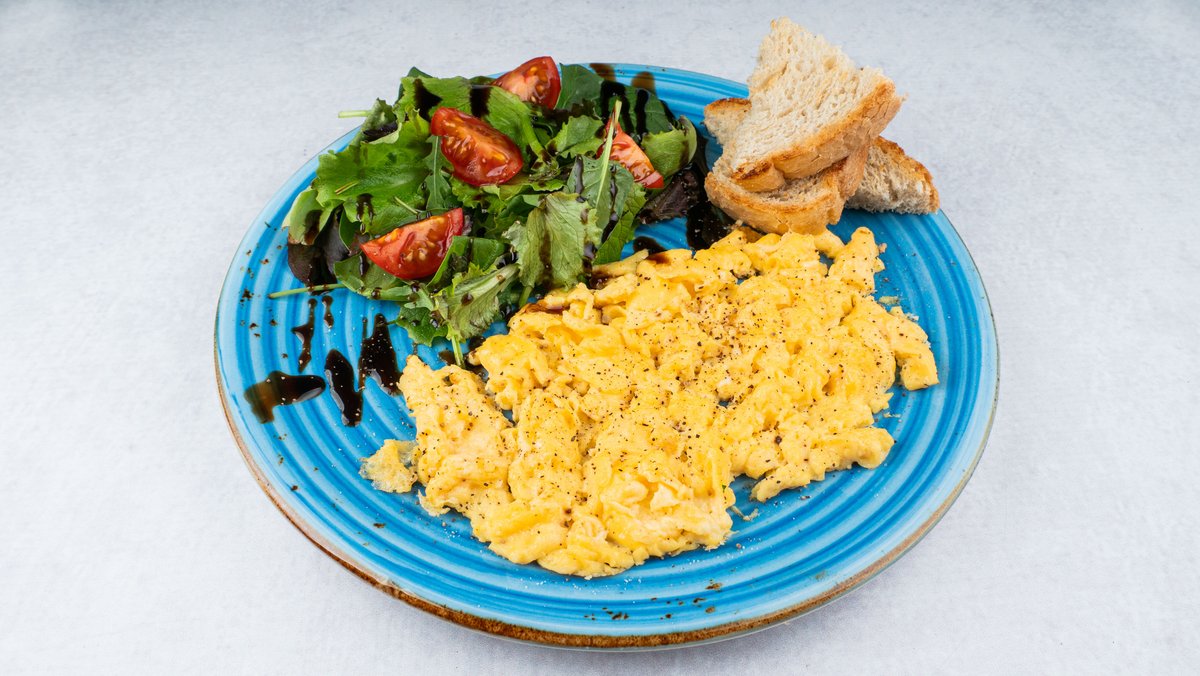 Јајца, сланина, кашкавал, домат, кромид, пиперка, микс салата, majo