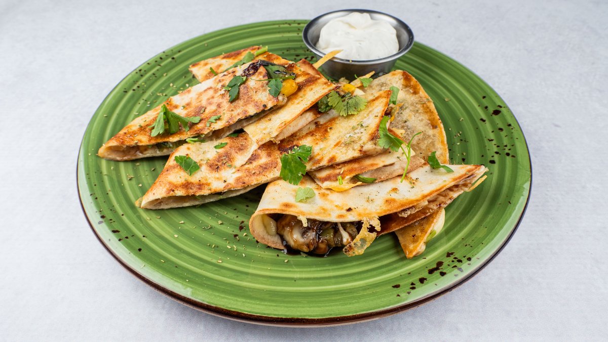 Тортиља 30цм, кашкавал, пченка, кромид, коријандер, павлака сос, пиперка, сајд сос x2