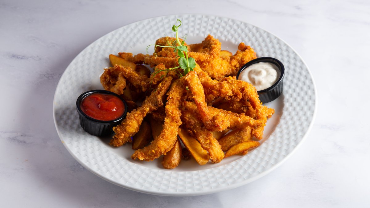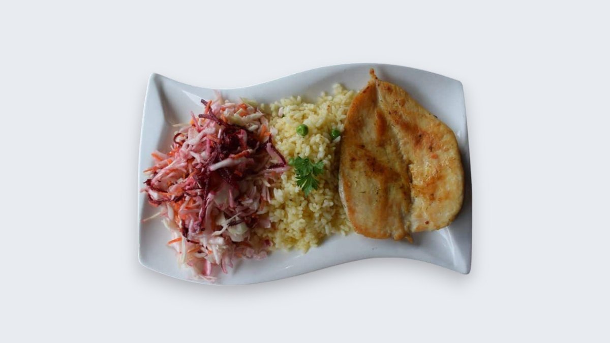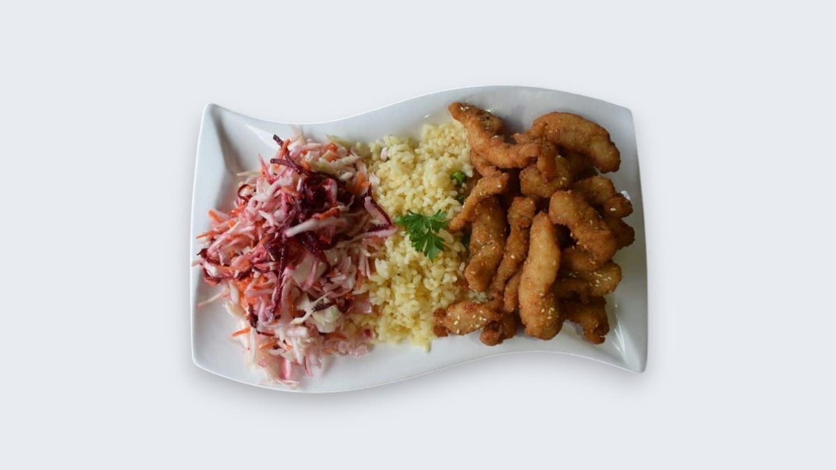 Оброк со пилешки прсти, ориз и салата