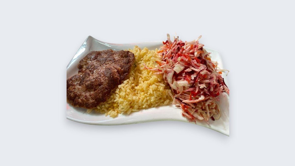 Оброк со плескавица, ориз и салата