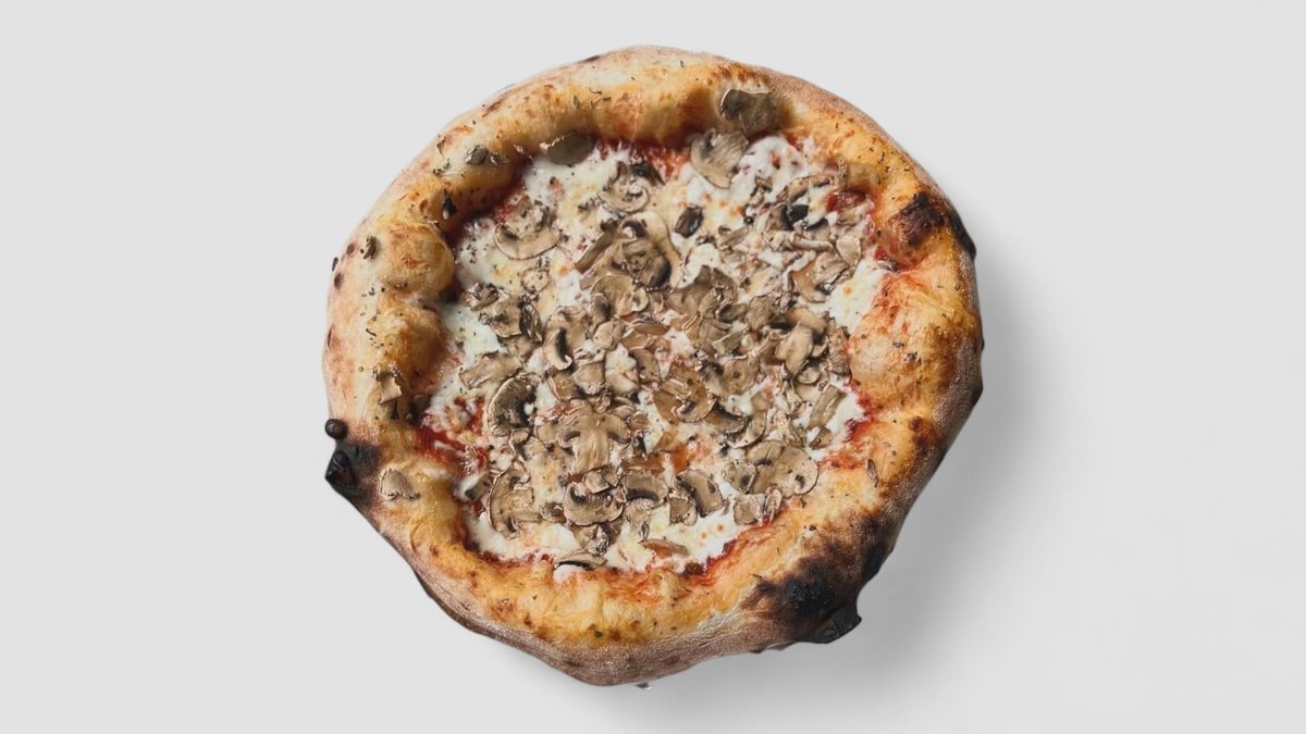 Доматен сос, кашкавал, свежи печурки, маслинки, црвен кромид, пиперка, домат