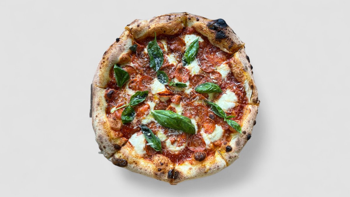 Доматен сос, свежа моцарела, кулен, пармезан, босилек и маслиново масло