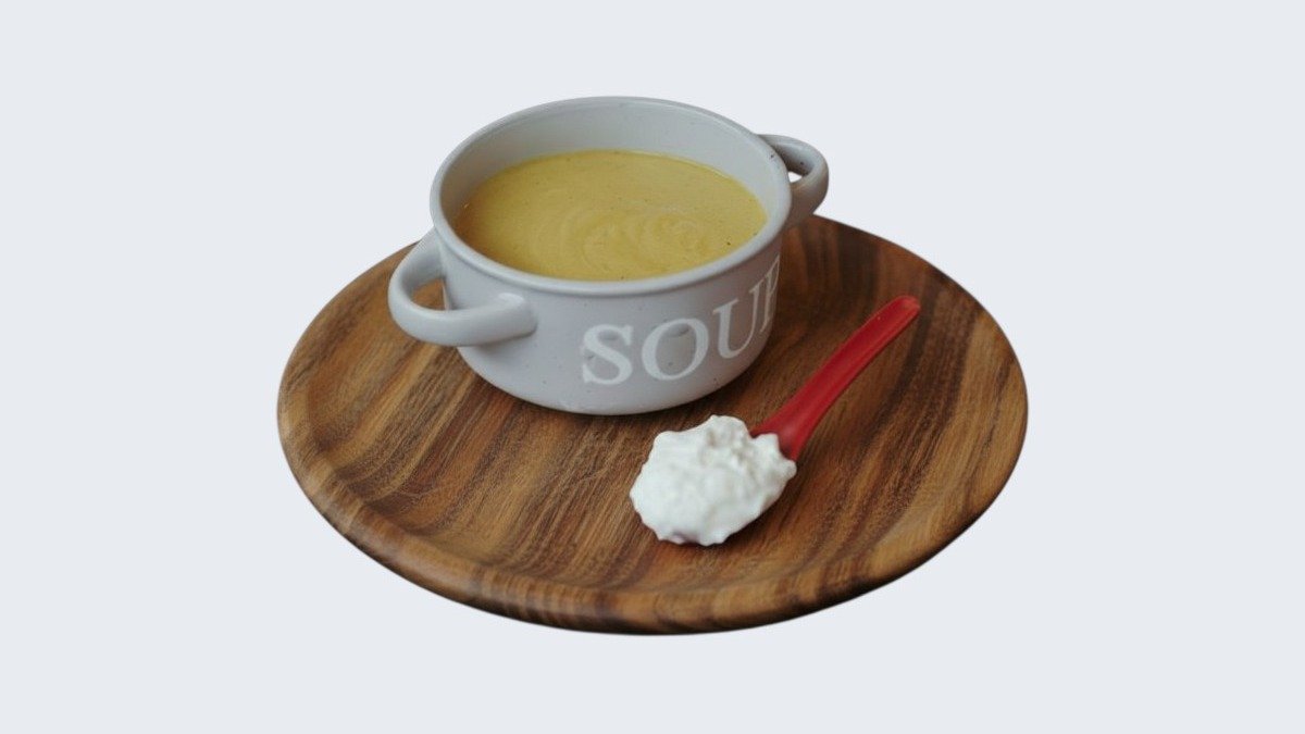 крем супа од црвена леќа со леб и павлака на страна