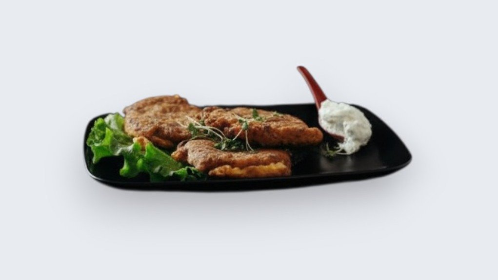 3 ќофтиња од тиквички, јајца и зачини послужени со павлака на страна