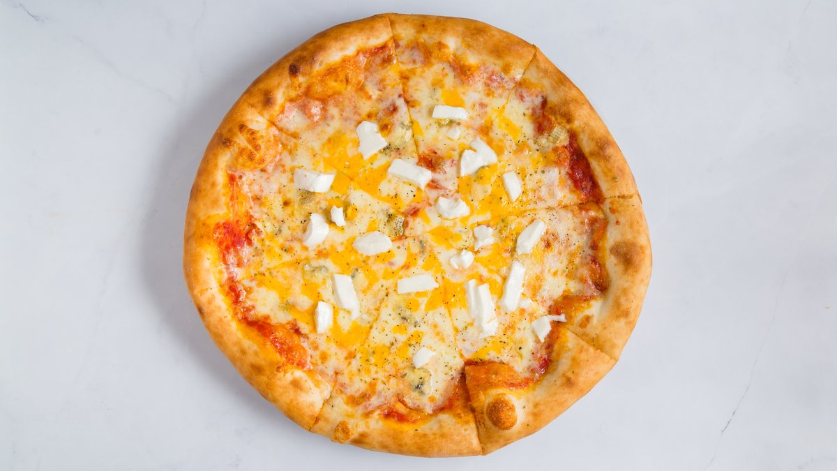 доматно пире, кашкавал, моцарела, пармезан, горгонзола, оригано
