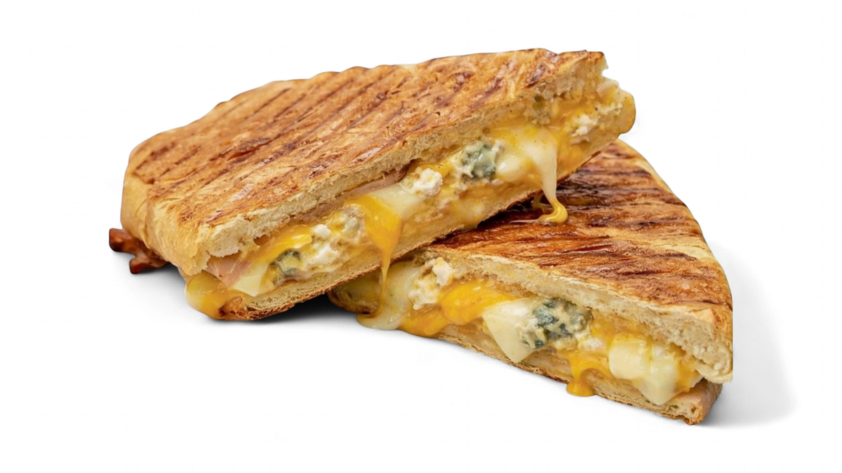 Долго лепче, чадени мисиркини гради, топен чедар, гауда кашкавал, сендвич моцарела, домат, пченка, маслинки, андалузија и кари сос