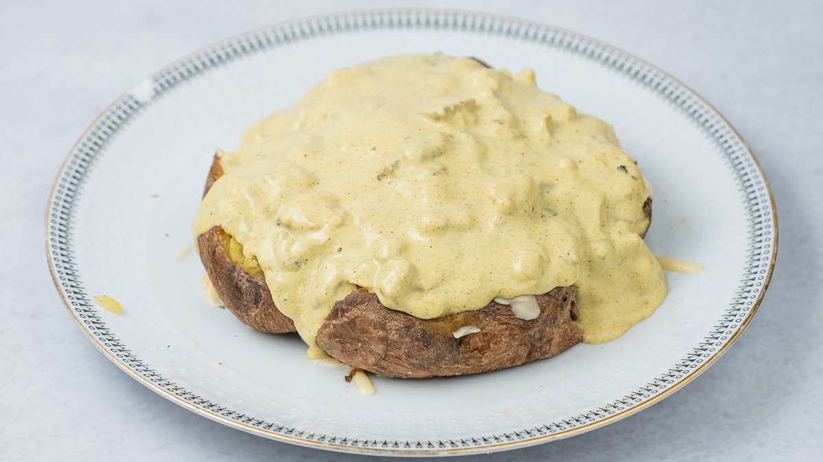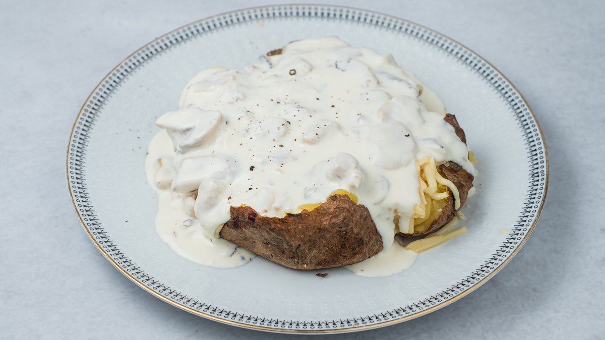 Компир, путер, кашкавал, сол и бибер, стек, кромид, печурки, хопла, кари зачин
