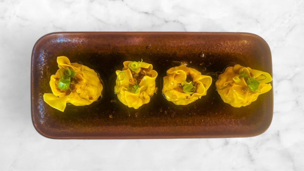 Bone based broth with homemade wontons filled with pork