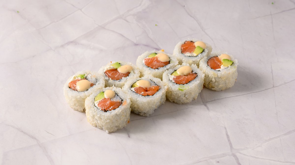 Salmon, Philadelphia Cheese, Avocado ,Tobiko, Topped Panko with Philadelphia Mayo.
