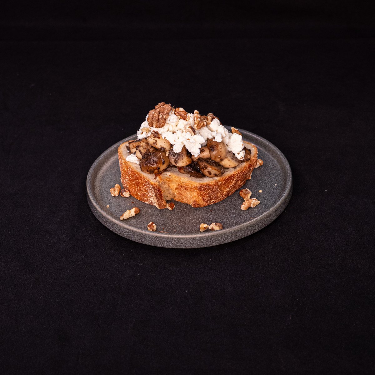 Local bread ( Xiklun ) topped with truffled muhsrooms, local ricotta, walnuts