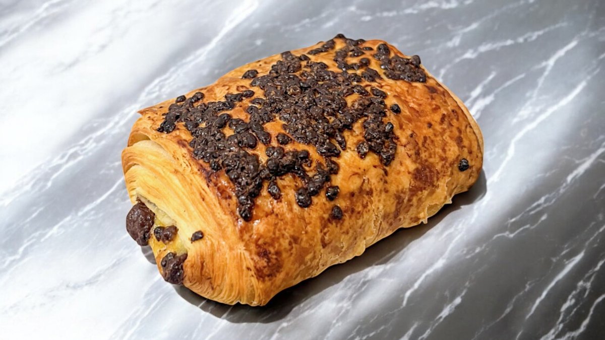 Two poached eggs and bacon topped with hollandaise sauce on sourdough bread