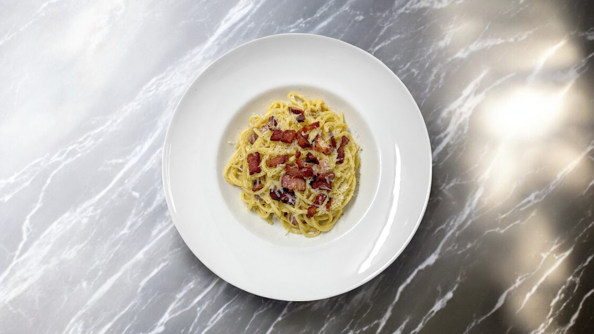 Pancetta, egg yolk, pepper and parmegiano reggiano cheese