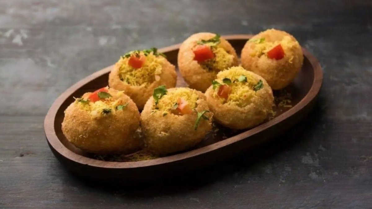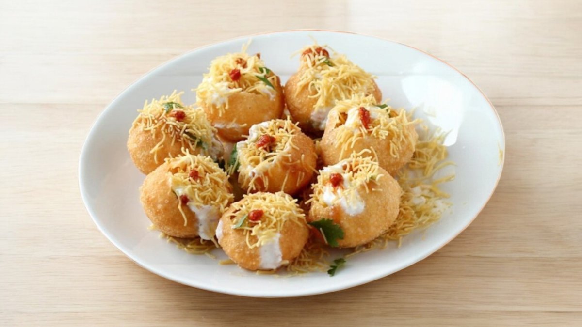 crispy-fried puffed ball that is filled with potato, chickpeas, onions, spices, yogurt, tamarind or mint chutney