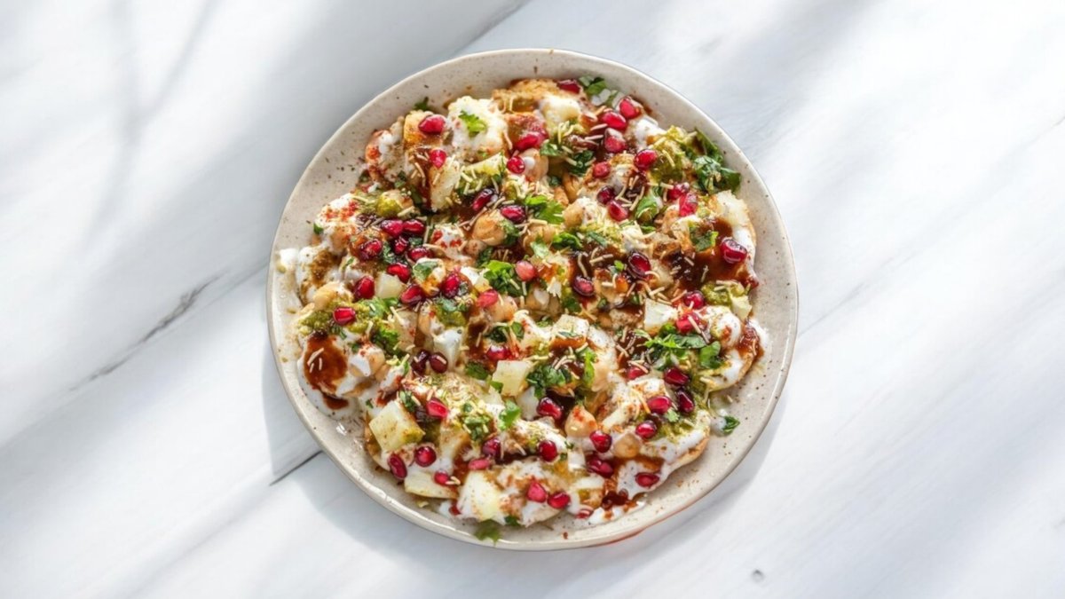 Papdi chaat is a Indian chaat snack made with crisp fried puris, sweet sour spicy chutneys and sev