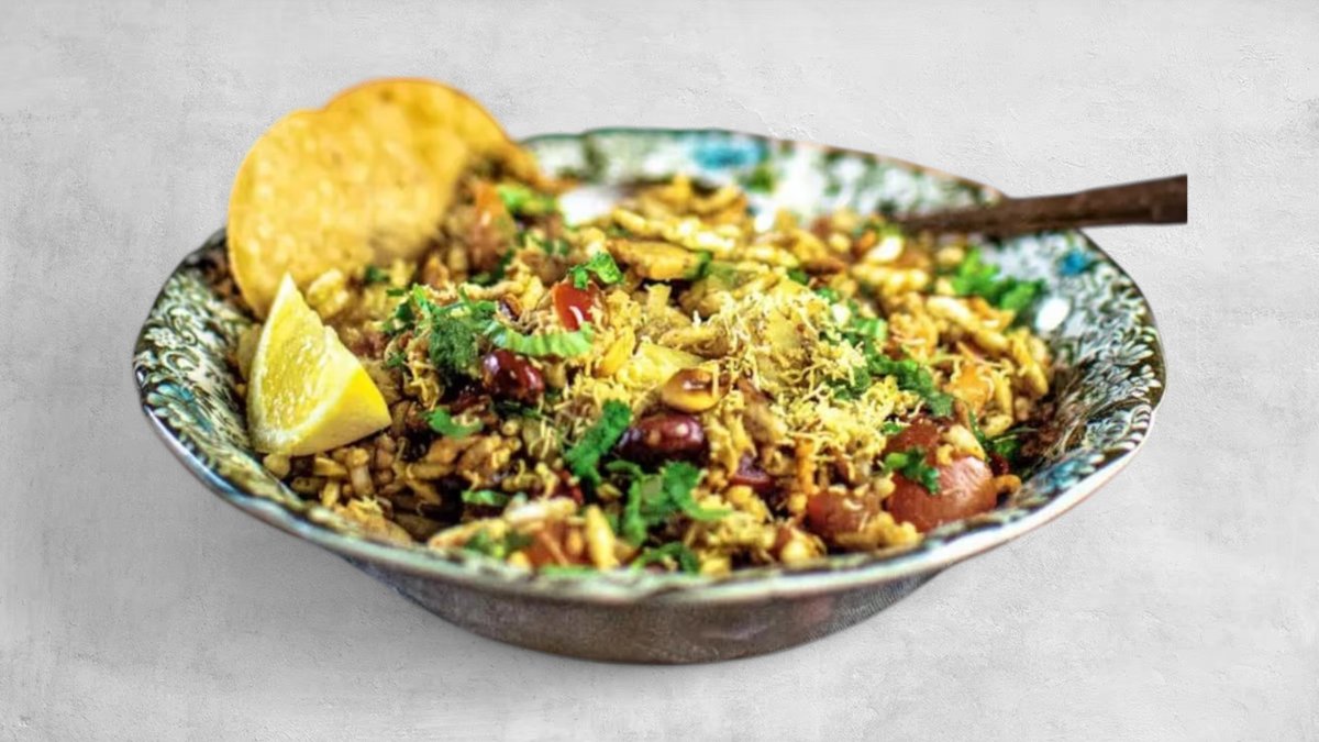 It is made of puffed rice, crumbled crunchy puri, onions, coriander and tossed with two chutneys: a green spicy coriander chutney and a brown tangy tamarind chutney
