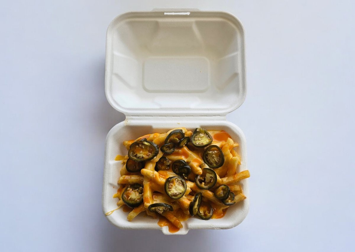 Double portion top quality fries cooked in 100% beef tallow, house made cheese sauce, pickled jalapenos and peri peri hot sauce