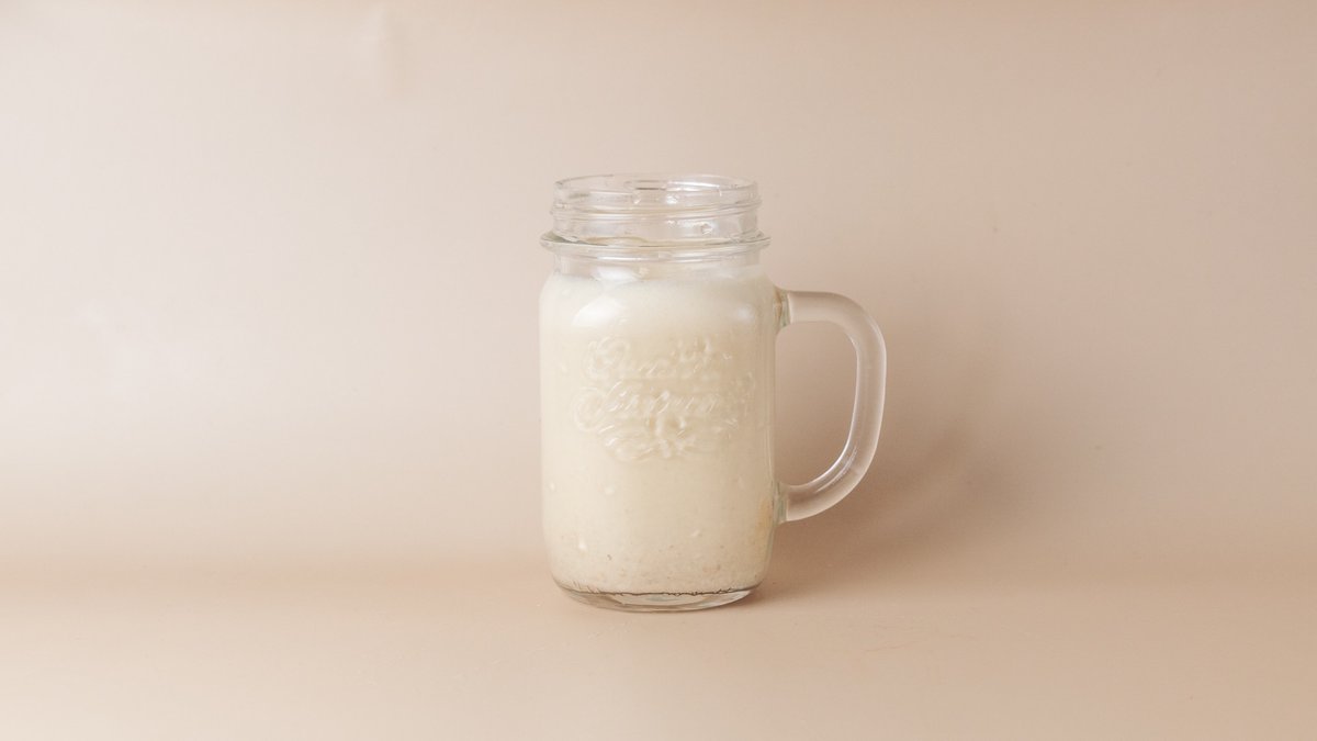 With banana, oats, strawberry, honey, and coconut milk. Choose the size you want