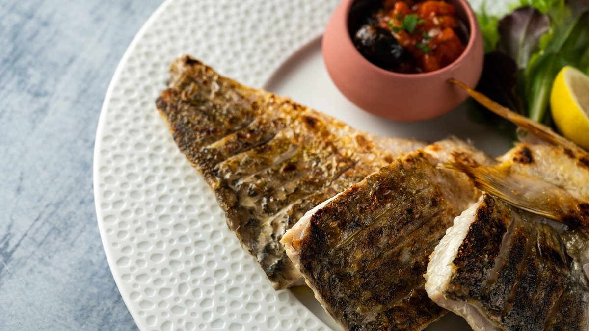 Battered salmon fillet, cranberry jam, rucola, arioli (tartar sauce), calamari fritti and fries