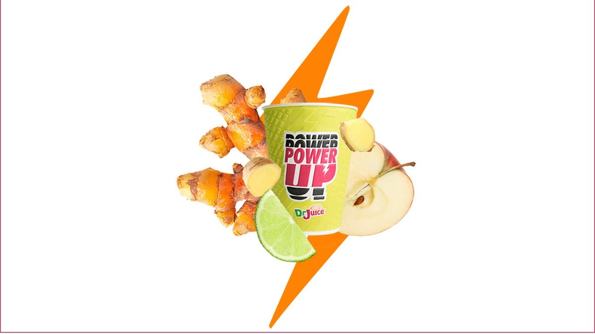 Turmeric, black pepper, cinnamon, probiotic kefir, mango, honey, coconut milk, freshly pressed orange juice. Nutritional info per 100ml Kcal: 74.530 / Fat: 0.610 / Saturates 0.350 / Carbs: 17.690 / Sugar 14.070 / Protein: 1.450 / Salt 0.020