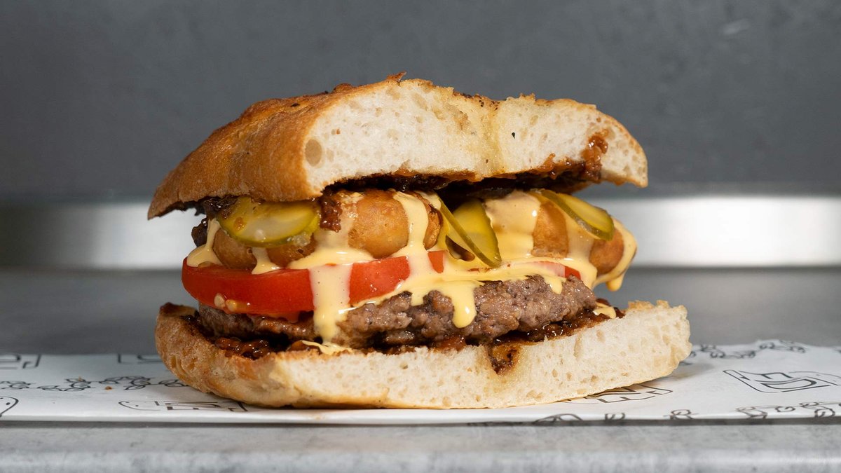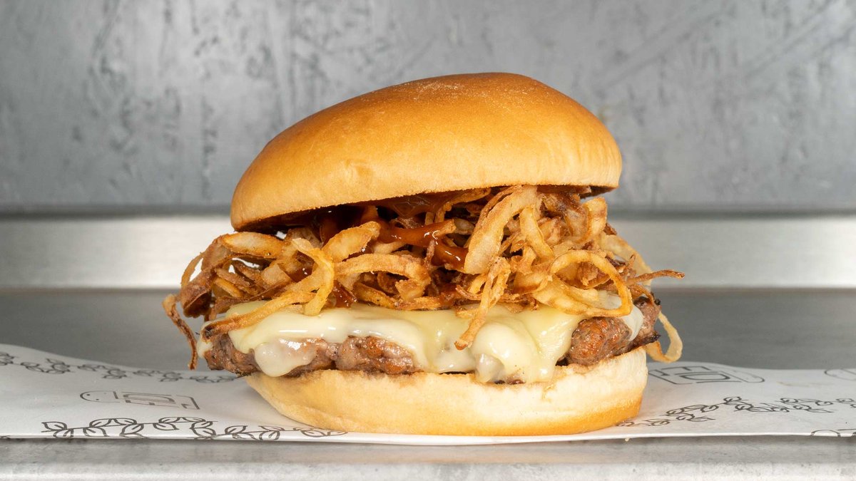 Grilled beef patty 160g, melted cheddar cheese, sautéed onions and comeback sauce in a toasted potato bun