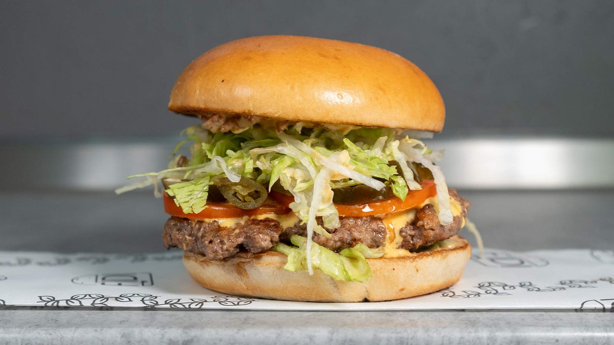 Grilled beef patty 160g, Mexican cheese, jalapeno peppers, tomato, lettuce and spicy chorizo mayonnaise in a toasted potato bun
