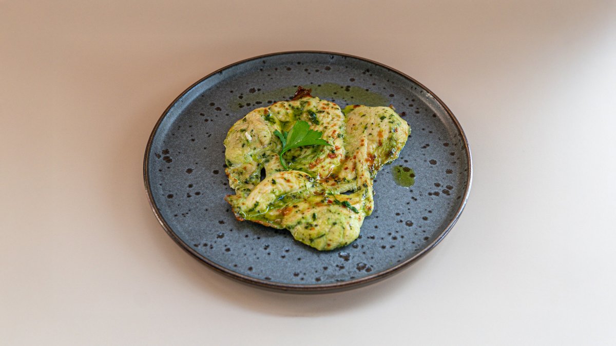 Wholemeal toast bread, pesto infused labneh chicken breast, scrambled eggs, cottage cheese, tomato, rucola . Allergens: milk, eggs, dairy, gluten 536,7 kcal, P 64g, C 43g, F 27,7g