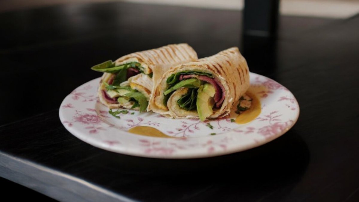 Cured salmon, red onion, avocado, cucumber, spinach and cream cheese