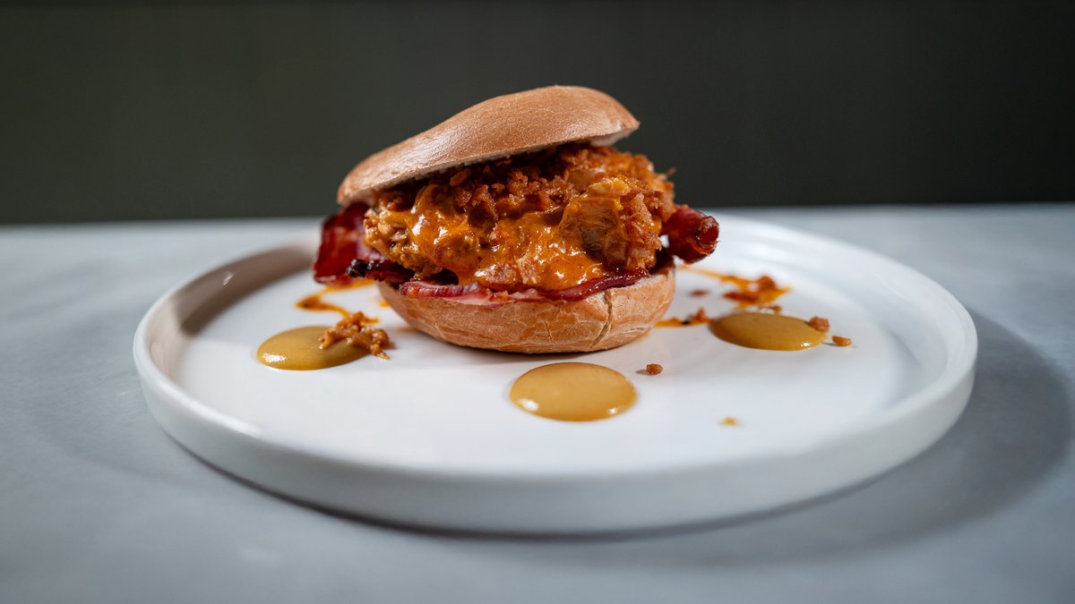 Bacon, crispy onion, pulled chicken, chilli oil and a smoked paprika cheese sauce