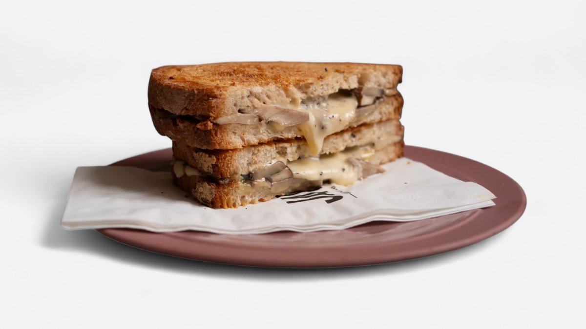 truffle mayo, cheddar cheese, mozzarella & roasted garlic mushrooms on a Maltese bread