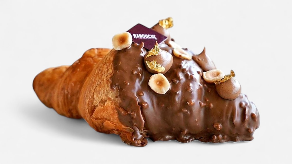 Croissant filled with Nocciola cream & crunchy hazelnut praline, coated in chocolate & hazelnut dip