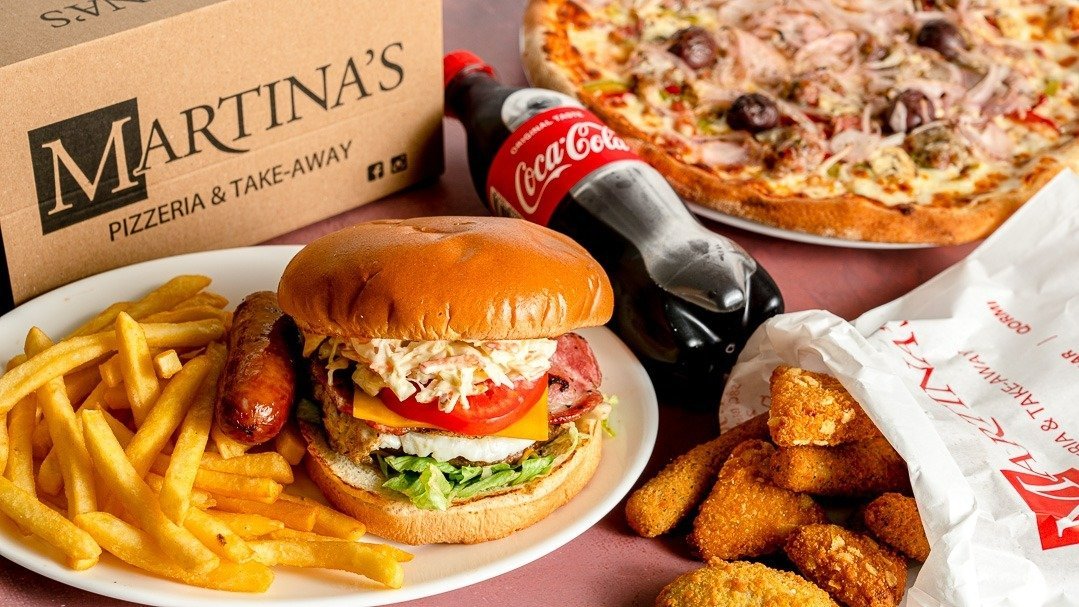 Double beef patty 200g, mozzarella, American cheese, cheddar cheese, lettuce, onions ,tomatoes and Martina’s sauce