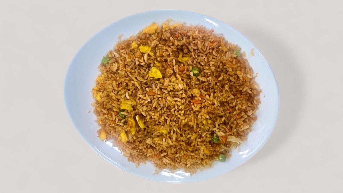 boiled rice lightly stir fried with egg ,chicken,curry,pineapple