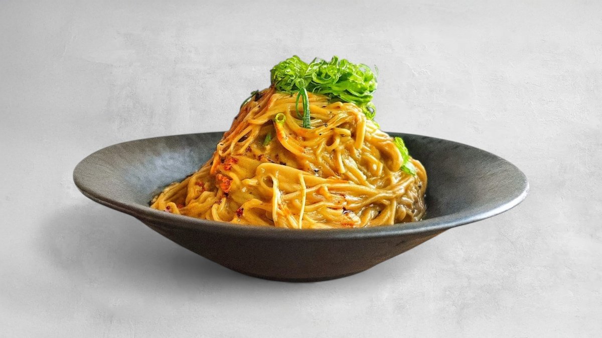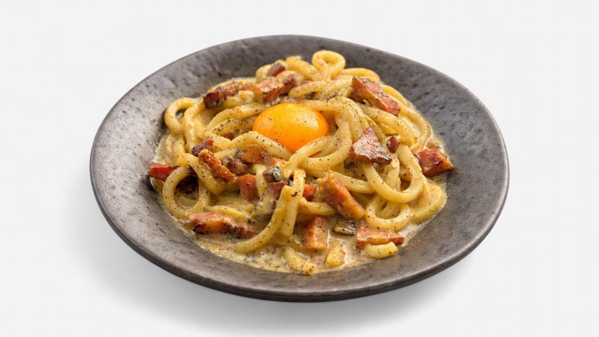 Thick chewy udon noodles, smoked pancetta, miso aged parmesan, egg yolk & black pepper.