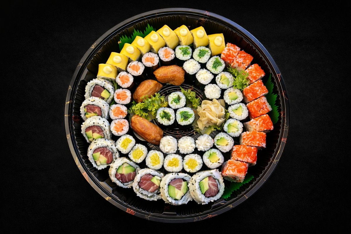 6 pieces of Daikon Hosomaki 6 pieces of Salmon Hosomaki 6 pieces of Sweet Potato Hosomaki 6 pieces of Cream cheese Hosomaki 6 pieces of Carb Hosomaki 8 pieces of California Roll 8 pieces of New Style Creamy Mango Roll 8 pieces of Chicken Avocado Uramaki 4 pieces of Kewpie Tofu Pocket Image for reference only